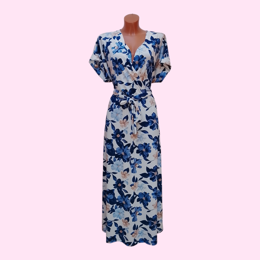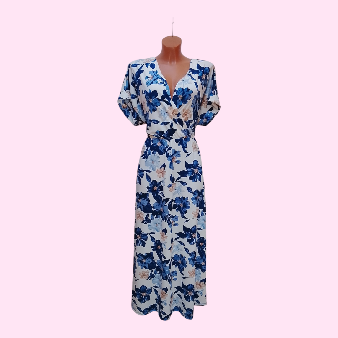 Deze prachtige jurk met frisse bloemenprint is perfect voor een stijlvolle en comfortabele look. De V-hals en licht getailleerde pasvorm zorgen voor een flatterend effect, terwijl de luchtige stof ideaal is voor warme dagen.